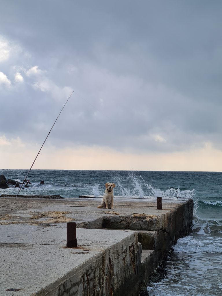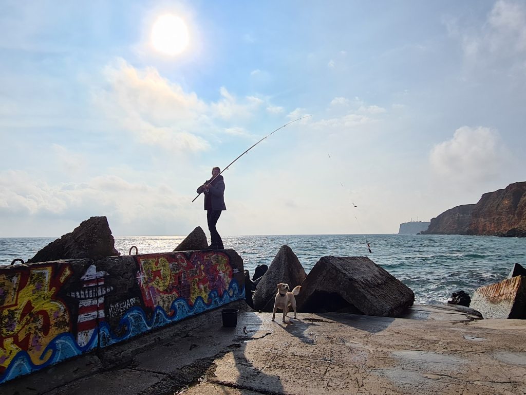 Miro passt auf die Angel auf