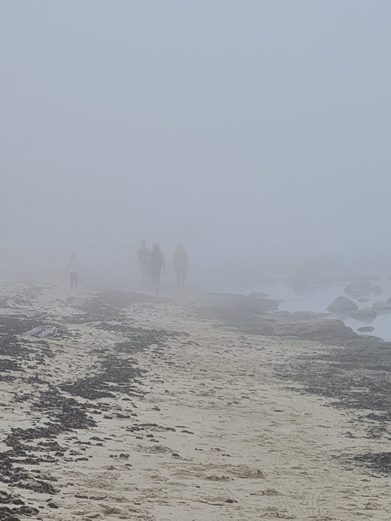 Der Spaziergang durch eine Parkanlage endet an einem wunderschönen leeren Ostseestrand. Die Sonne meint es gut mit uns. Es kommt nochmal Sommerfeeling auf, und Lars, Klara und Jule gehen spontan baden (Miro natürlich sowieso). Doch binnen weniger Minuten zieht dichter Nebel auf und es wird kalt. Ein fast gespenstisch anmutendes Naturschauspiel, das genauso schnell vorüber ist wie es begonnen hat.