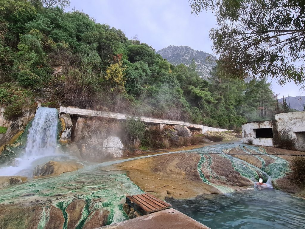 Auf der Weiterfahrt nach Athen folgen wir einem Tipp und machen einen Abstecher zu den Thermopylen. Die schwefelhaltigen Quellen sind frei zugänglich und haben eine konstante Wassertemperatur von ca. 40 Grad.