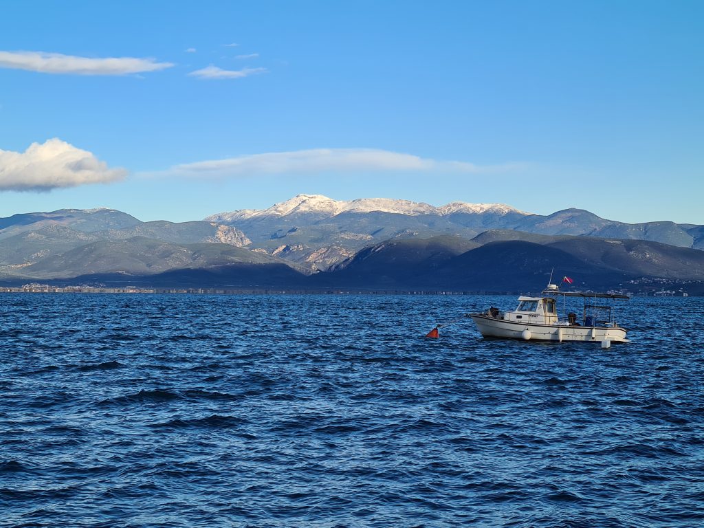 Nach einem Bummel durch Patras geht es für uns noch ca. 1,5 Autostunden weiter gen Norden. Neben unserem heutigen Übernachtungsplatz gibt es eine kleine Taverne, die zu dieser Jahreszeit nur noch spontan öffnet, wenn es Camper hierhin verschlagen hat. Zu Essen gibt es hauptsächlich, was der Chef morgens gefangen hat. Es schmeckt phantastisch! Wir kommen mit den Restaurantbetreibern ins Gespräch und kaufen Ihnen auch gleich noch Olivenöl aus eigener Ernte ab.