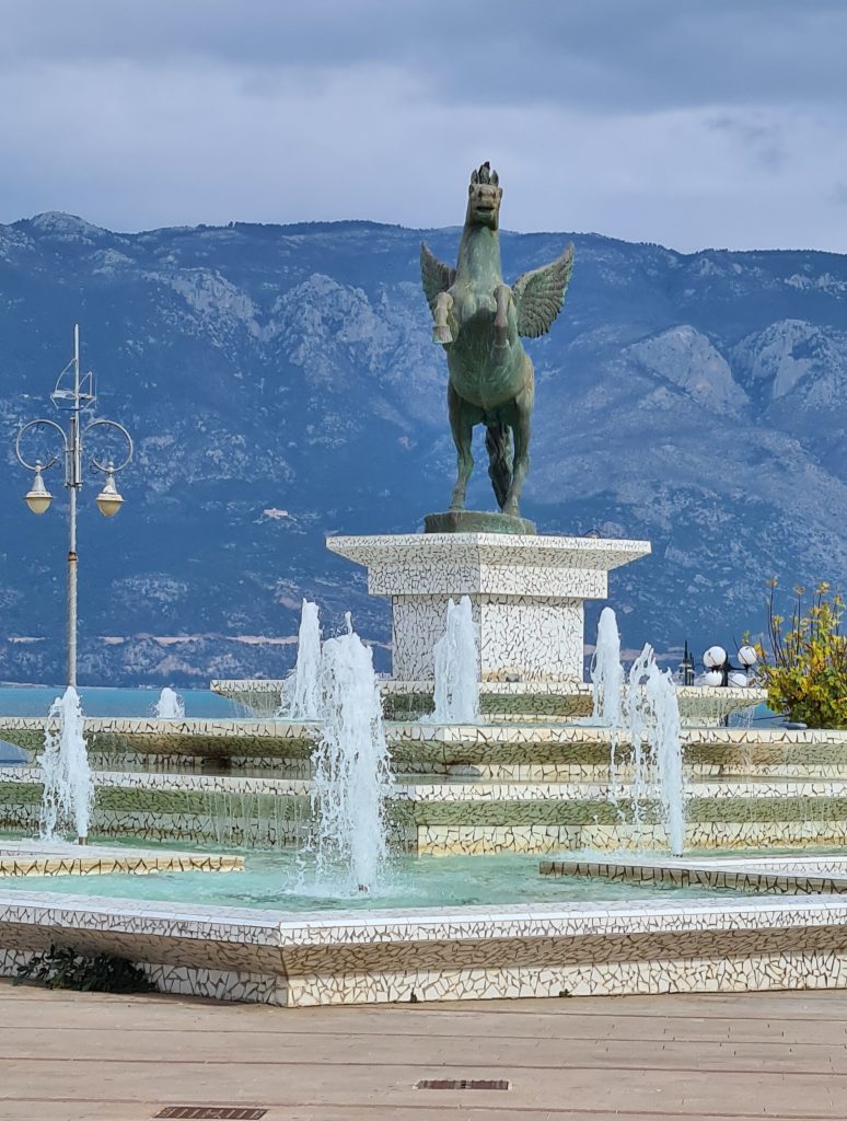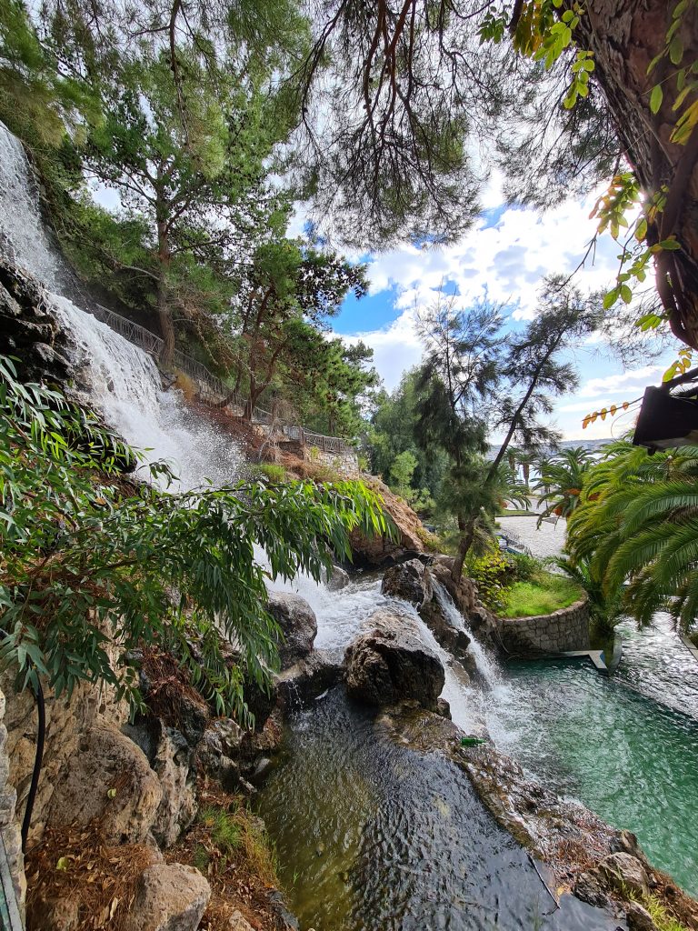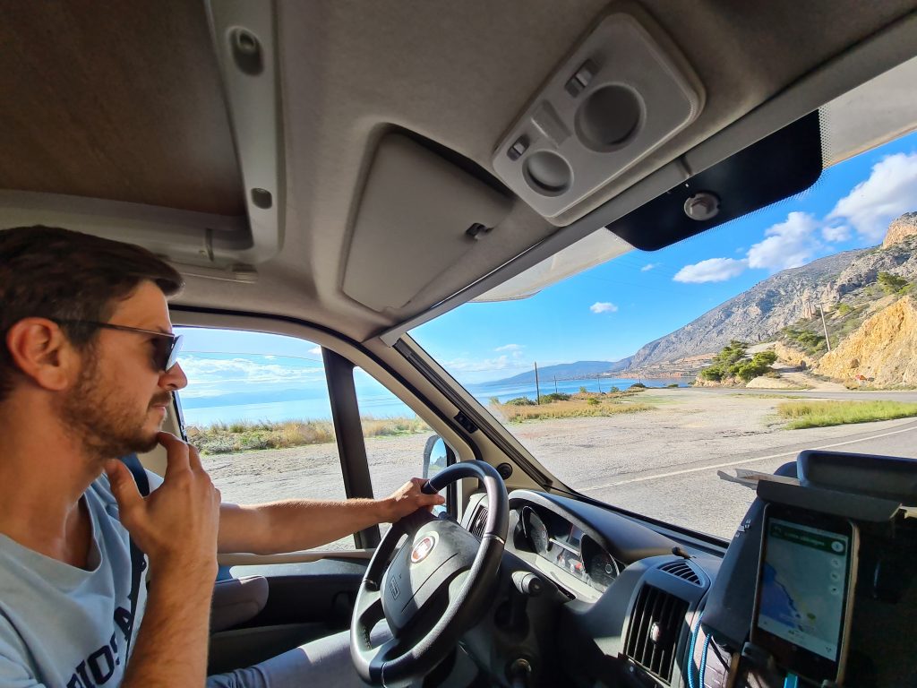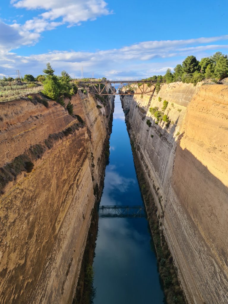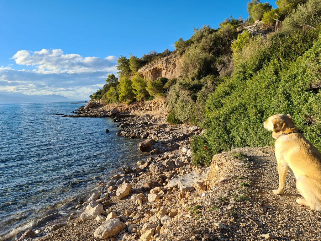Nicht weit von unserem Übernachtungsplatz entfernt sind die Loutraki Waterfalls. Dort drehen wir unsere Morgenrunde mit Miro, bevor wir durch Korinth und dann weiter Richtung Patmos fahren.