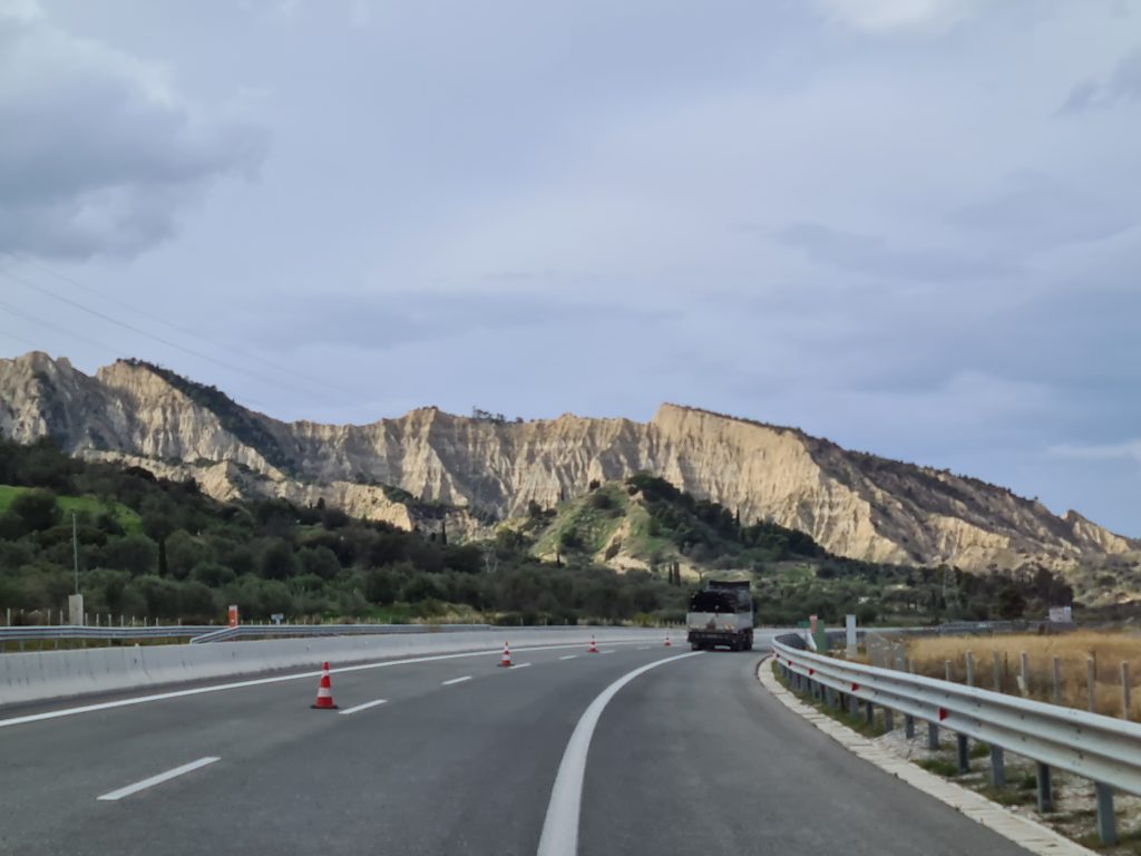 Wir dachten eigentlich, den Verkehr in Athen könnte so schnell nichts mehr toppen. Aber auch in kleineren Städten braucht man manchmal Nerven. Hier treffen sich zwei Bekannte zufällig, schalten dann erstmal mitten auf der Straße den Warnblinker ein und halten einen kurzen Plausch.
