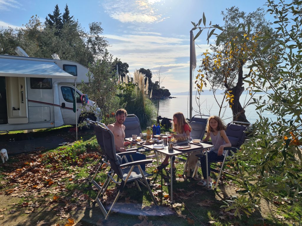 Im Anschluss fahren wir weiter nach Kato Gatzea, wo unsere „Parallelreisenden“ Martin und Louise vor ein paar Tagen waren und uns einen Campingplatz empfohlen haben. Obwohl wir erst im Dunkeln ankommen, sind wir schon begeistert und entscheiden, hier auf jeden Fall ein paar Tage zu bleiben.