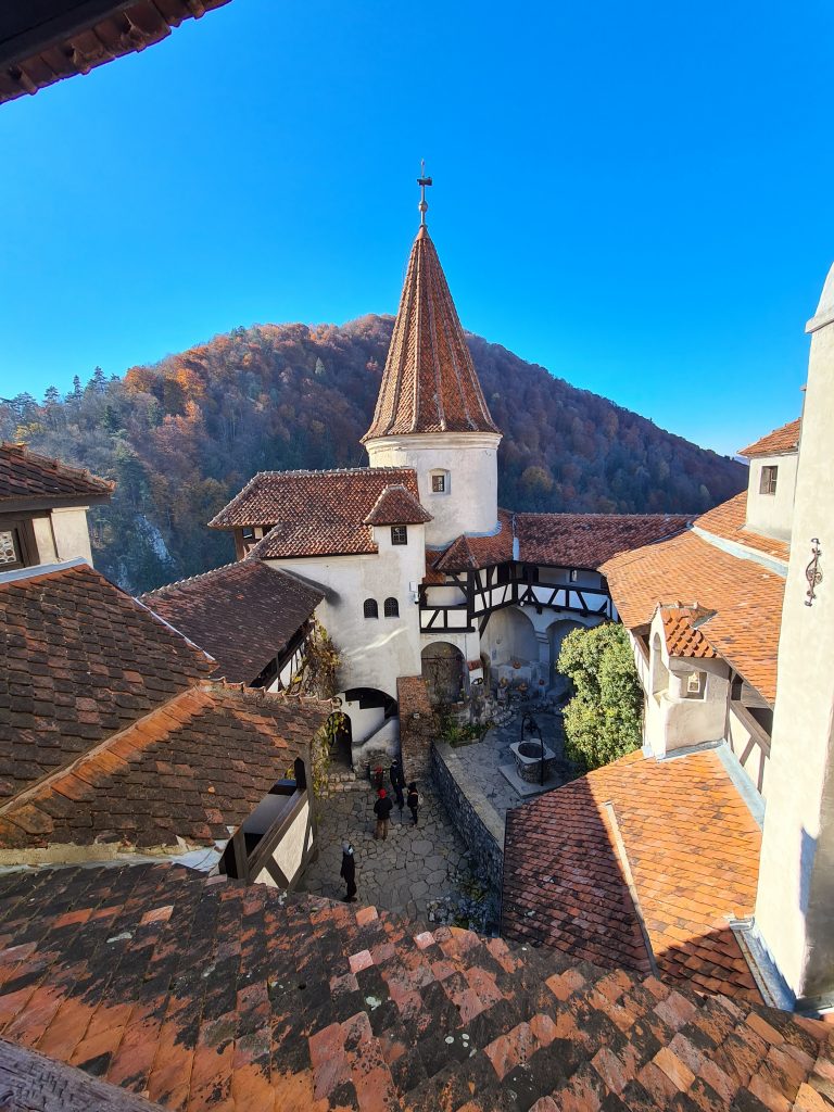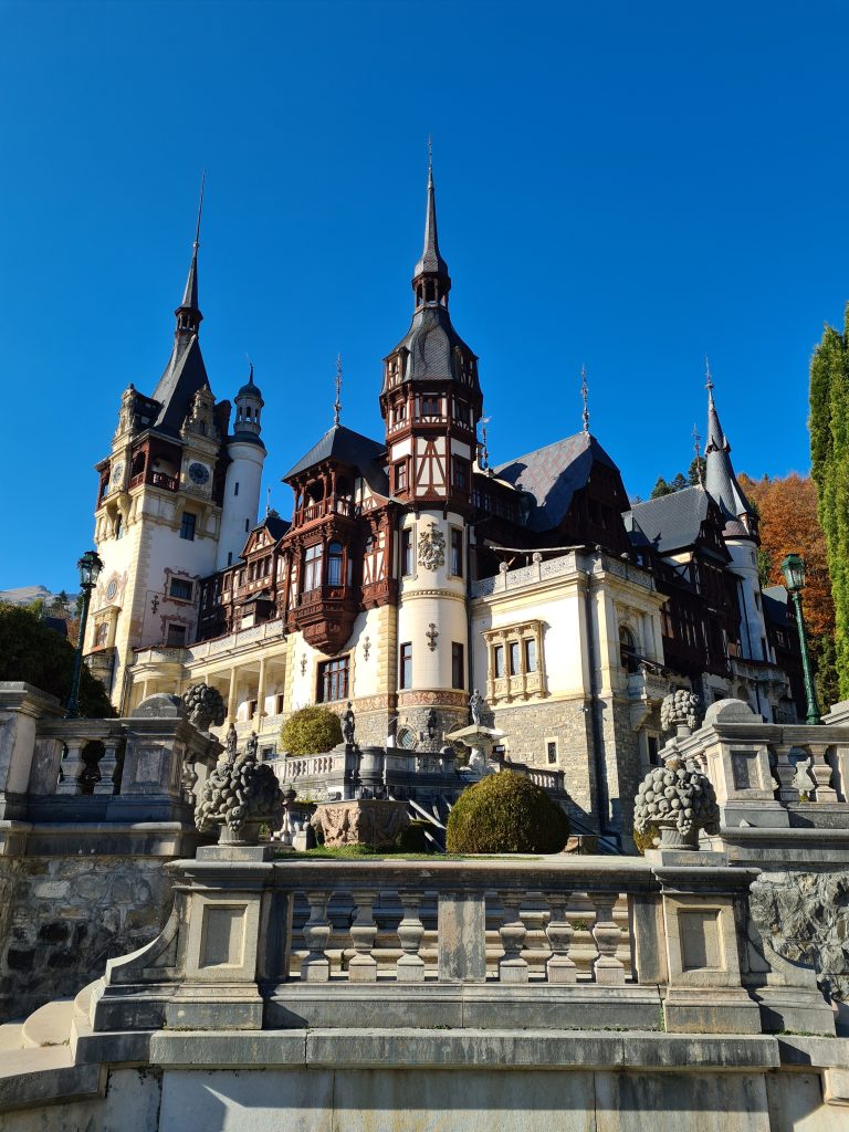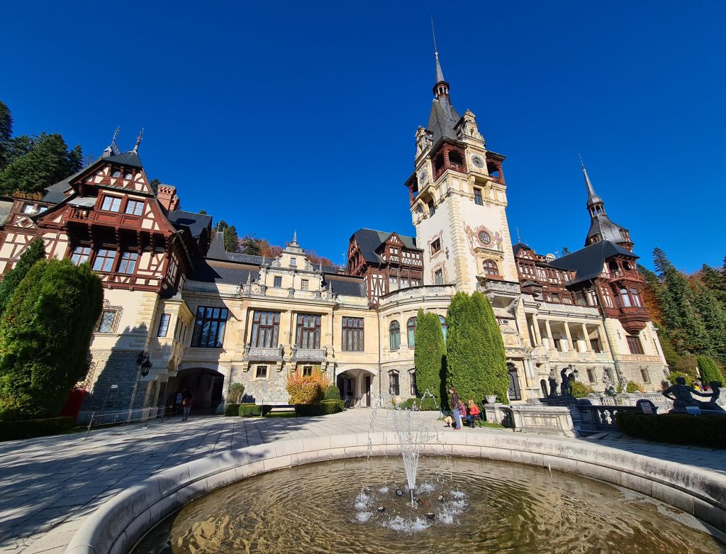 Bei strahlendem Sonnenschein machen wir uns auf durch die wunderschöne Herbstlandschaft nach Sinaia. Das dortige Schloss wurde im 19. Jahrhundert unter König Carol I. von Rumänien erbaut. Seiner Frau hat er direkt nebenan gleich noch ein eigenes Schloss errichten lassen.