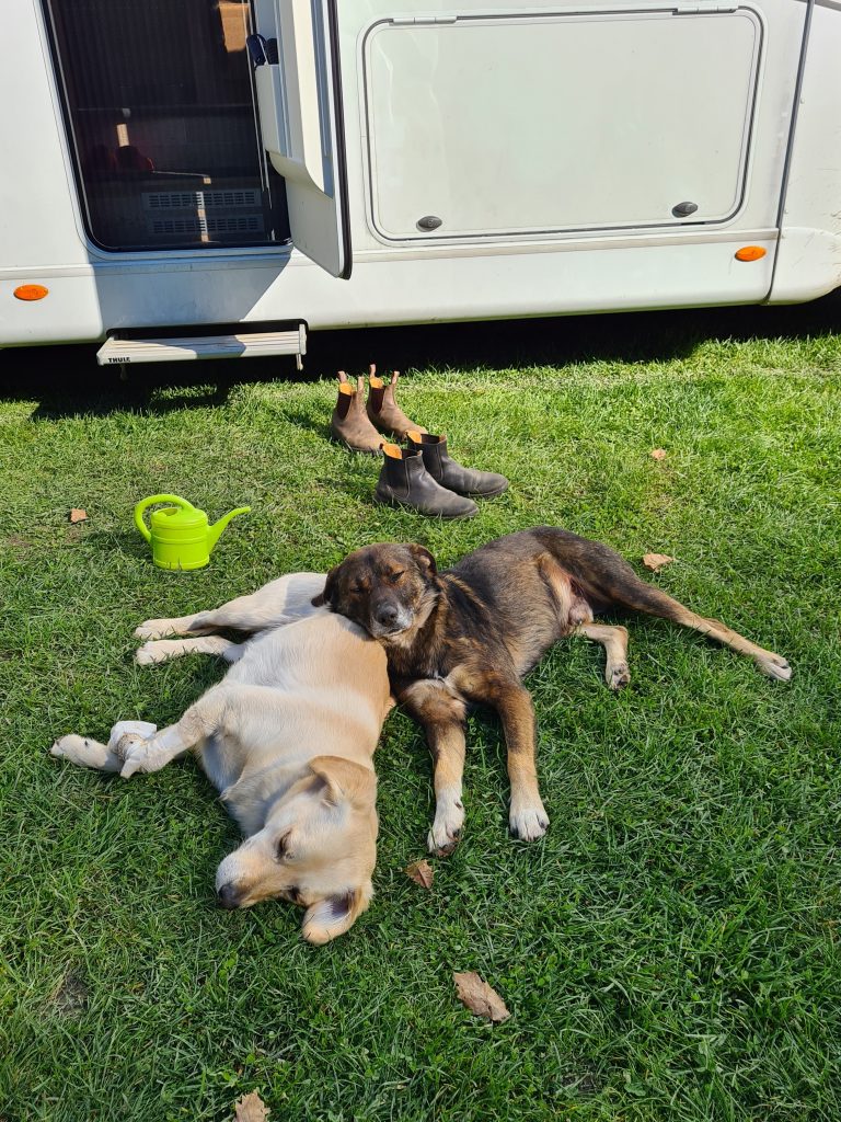 Nach einer sehr genauen Grenzkontrolle und dem Kauf einer Vignette stranden wir für heute Nacht an einer Schlucht auf einem verlassenen Campingplatz. Na ja, nicht ganz verlassen. Nachdem wir schon so viel über die Problematik der Straßenhunde in Rumänien gehört hatten, lässt der erste nicht lange auf sich warten. Miro freut sich einfach über eine nette Spiel-Session mit dem fremden Artgenossen, aber den Mädels bricht es das Herz, dass der Kleine kein Zuhause hat. Am Ende des Tages und nach einer langen Diskussion, warum wir ihn nicht auch noch aufnehmen können, erbt der Wildling Miros Spielzeugtau und bekommt zum Abendessen eine Extra-Portion Futter ab.