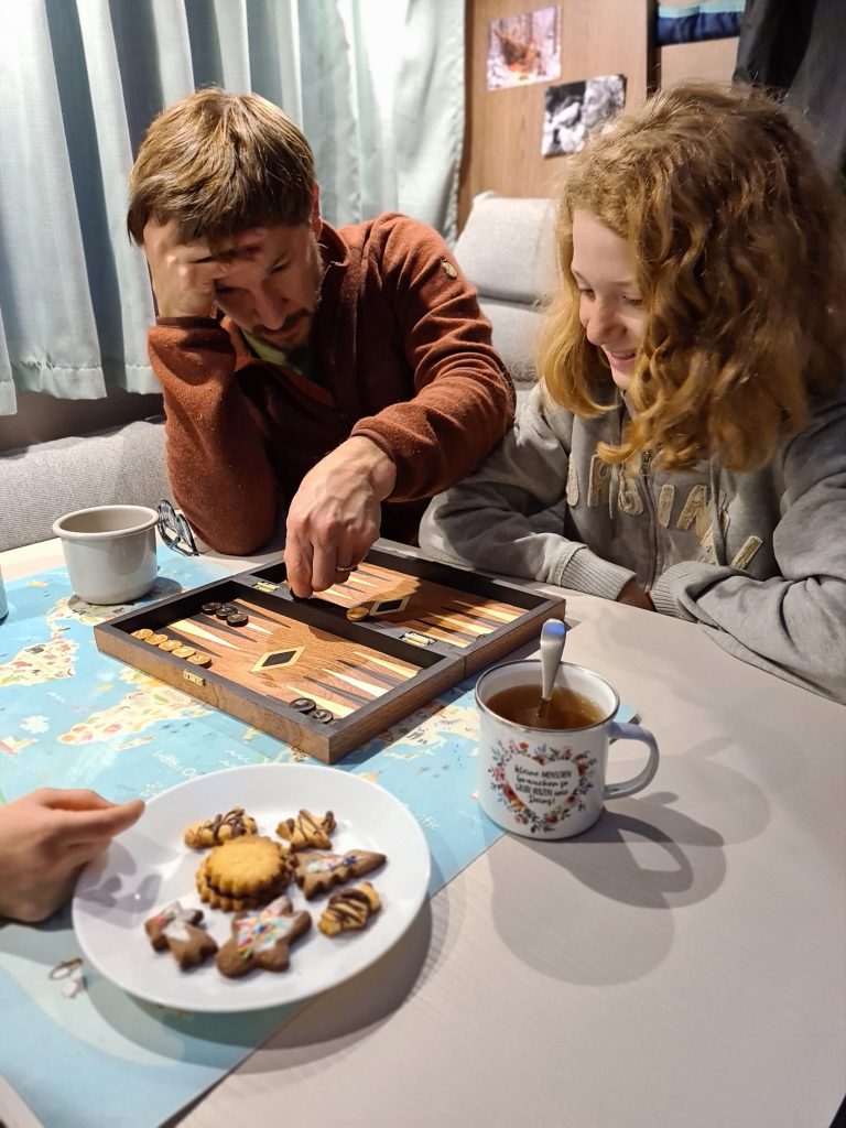 Da es kaum geöffnete Campingplätze oder Stellplätze zu dieser Jahreszeit gibt, sind wir nicht die Einzigen und finden uns abends in netter Runde mit zwei weiteren langzeitreisenden Pärchen und Tochter wieder. Jule freut sich sehr über eine fast gleichaltrige Spielpartnerin, die auch noch die gleiche Sprache spricht.