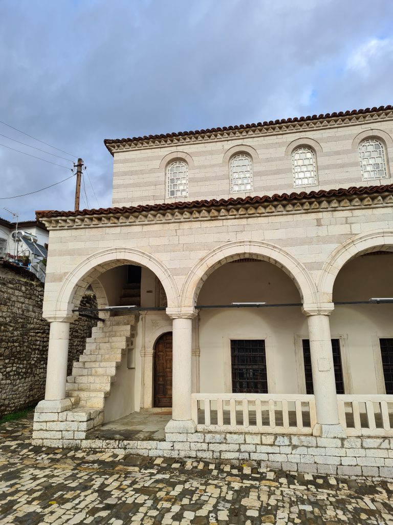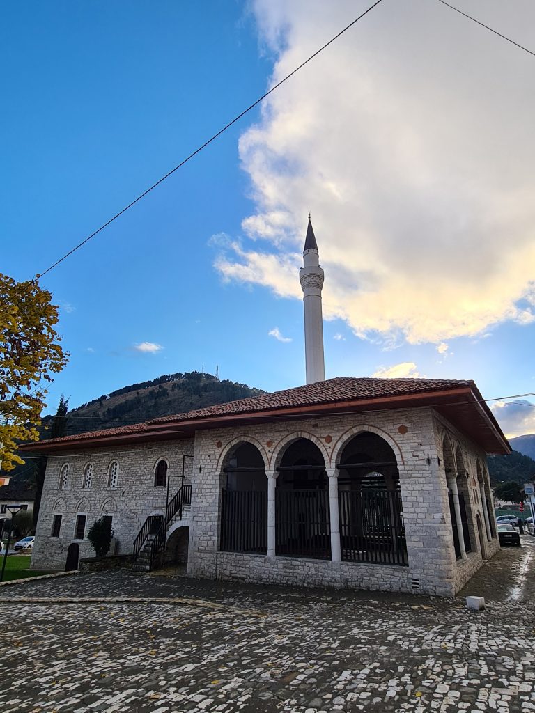 Wir begegnen zufällig dem Hausmeister der Moschee und erhalten eine spontane Führung durch die sunnitische Königsmoschee und die gegenüberliegende schiitische Halveti-Tekke. Er betont, dass hier in Albanien Christen und Muslime friedlich miteinander leben. Auch eine Heirat unter Pärchen mit unterschiedlichem religiösen Hintergrund sei nicht selten.