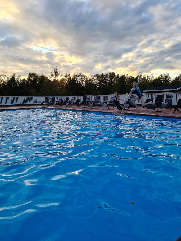 • An einem Campingplatz hinter der Grenze ist der letzte Pooltag vor Saisonende.