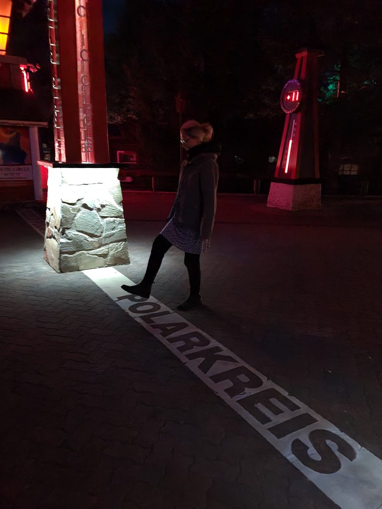 Hier in der Hauptstadt des finnischen Teils Lapplands wohnt angeblich der echte Weihnachtsmann. Da sein Büro ganzjährig geöffnet ist, werden wir ihm morgen mal einen Besuch abstatten. Heute Abend begnügen wir uns damit, im Santa Claus Village zu Fuß den Polarkreis zu überschreiten.