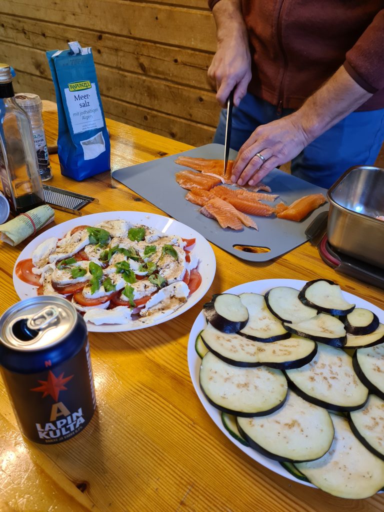• Heute gibt’s Lachsforelle. Ein Geschenk unseres finnischen Angelnachbarn.